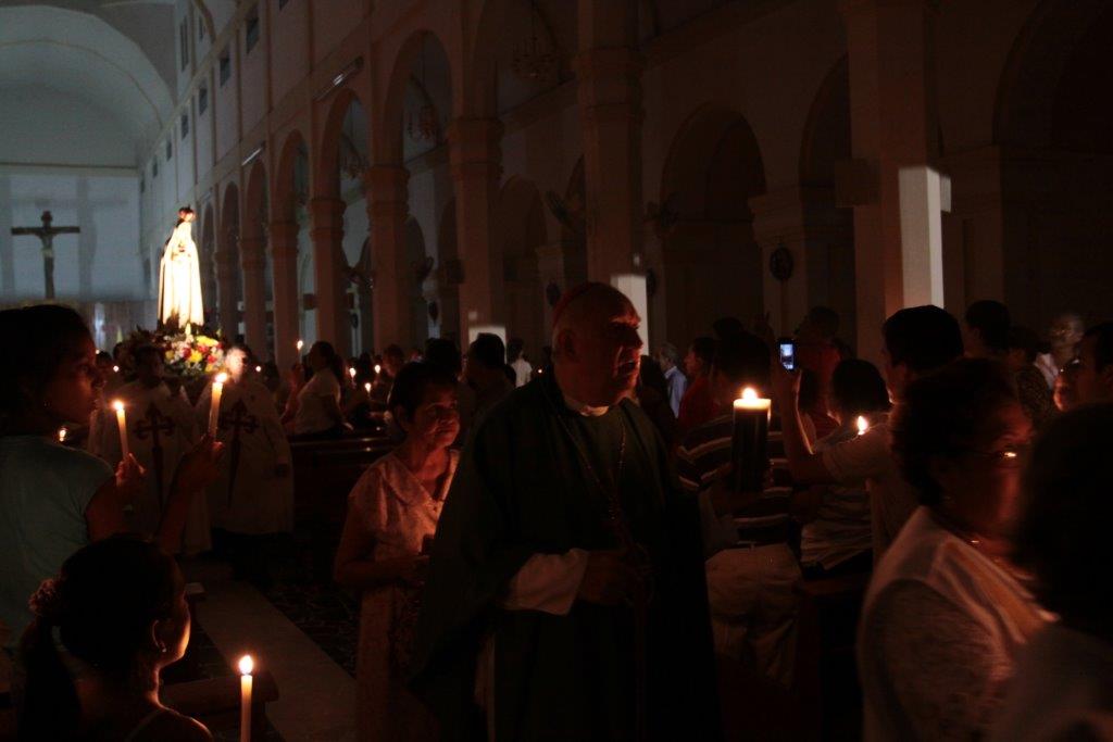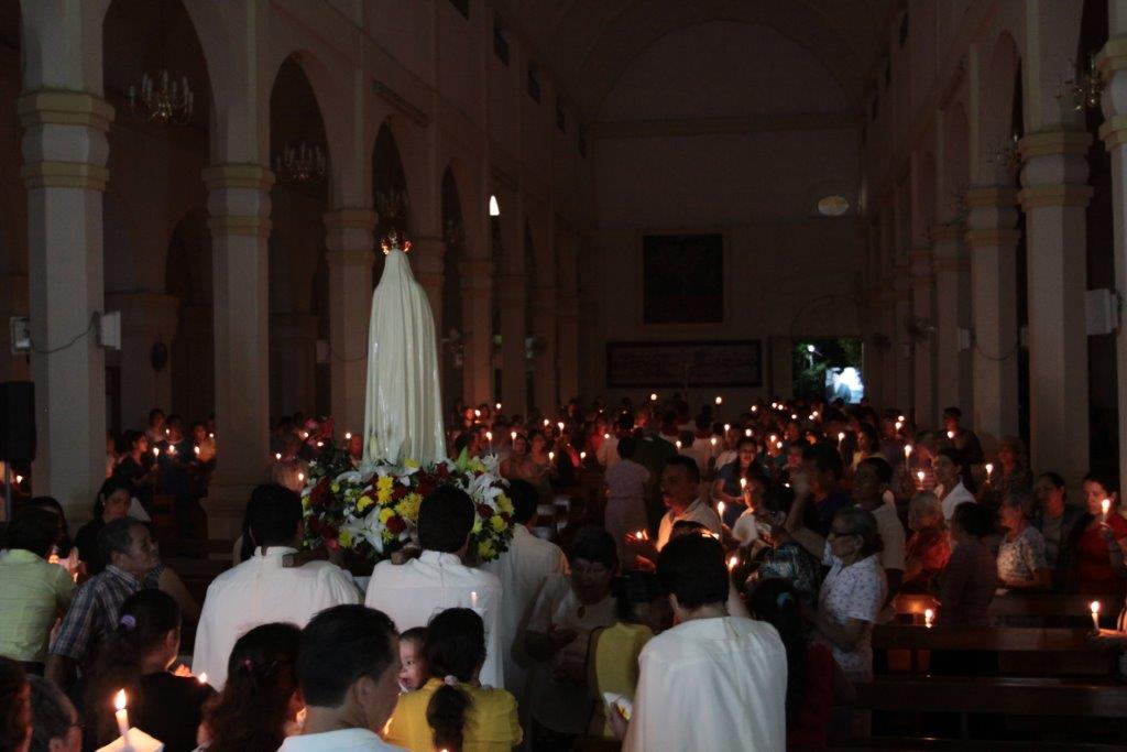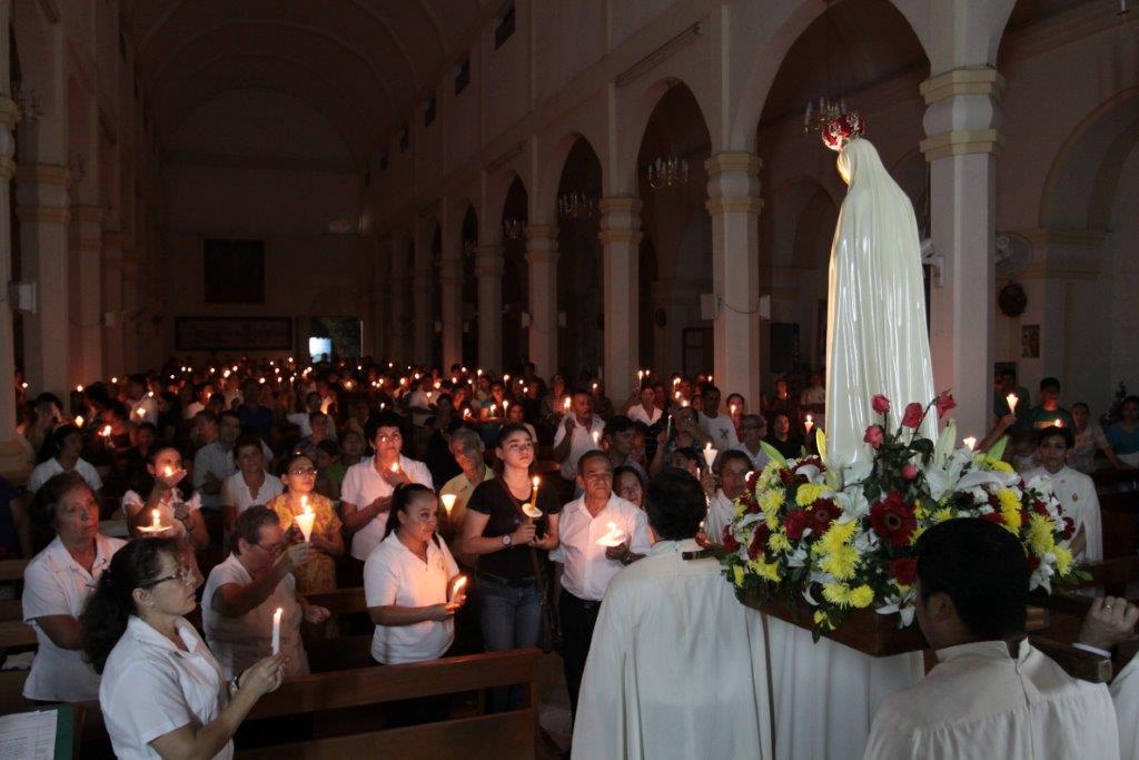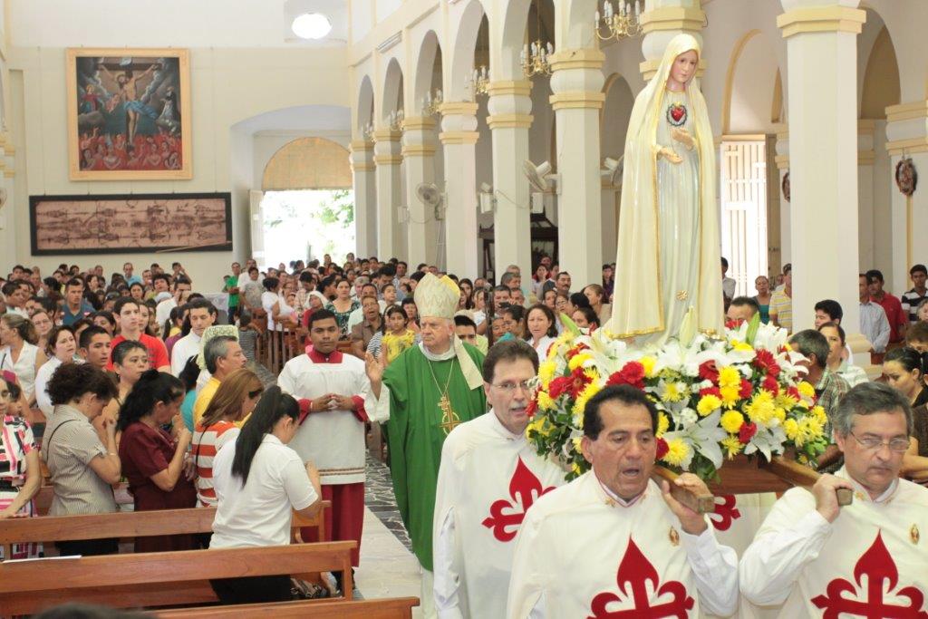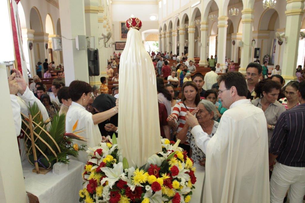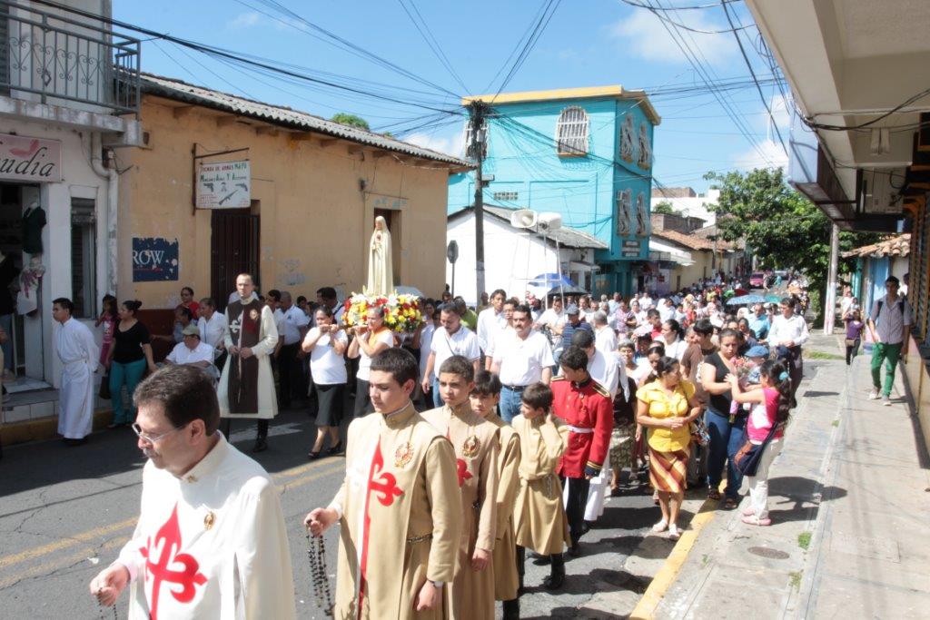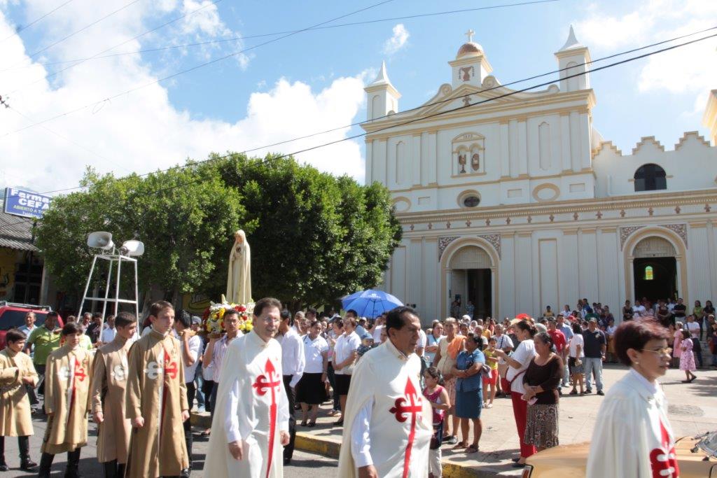 Con motivo del 96º aniversario de la última aparición de la Virgen de Fátima, los Heraldos del Evangelio en conjunto con la Diócesis de Chalatenango, El Salvador, promovieron una peregrinación de la imagen del Inmaculado Corazón de María de Fátima  a la Ciudad de Chalatenango. El acto comenzó con una procesión con la Imagen, acompañada por  medio millar de fieles, que terminó en la Catedral dedicada a San Juan Bautista, donde fue recibida por Mons. Luis Morao Andreazza, OFM. Obispo de Chalatenango, Mons. Marco Tulio León, párroco de la Catedral y una multitud de devotos llenos de entusiasmo y entre aplausos. La imagen fue solemnemente coronada por el Obispo de Chalatenango como reina de todos los corazones de los presentes y de toda la Diócesis, y a seguir se celebró la Santa Misa. La imagen visitó, por la tarde, inúmeros hogares y la Peregrinación finalizó con una Misa de clausura y una emotiva procesión de velas dentro de la Catedral.
