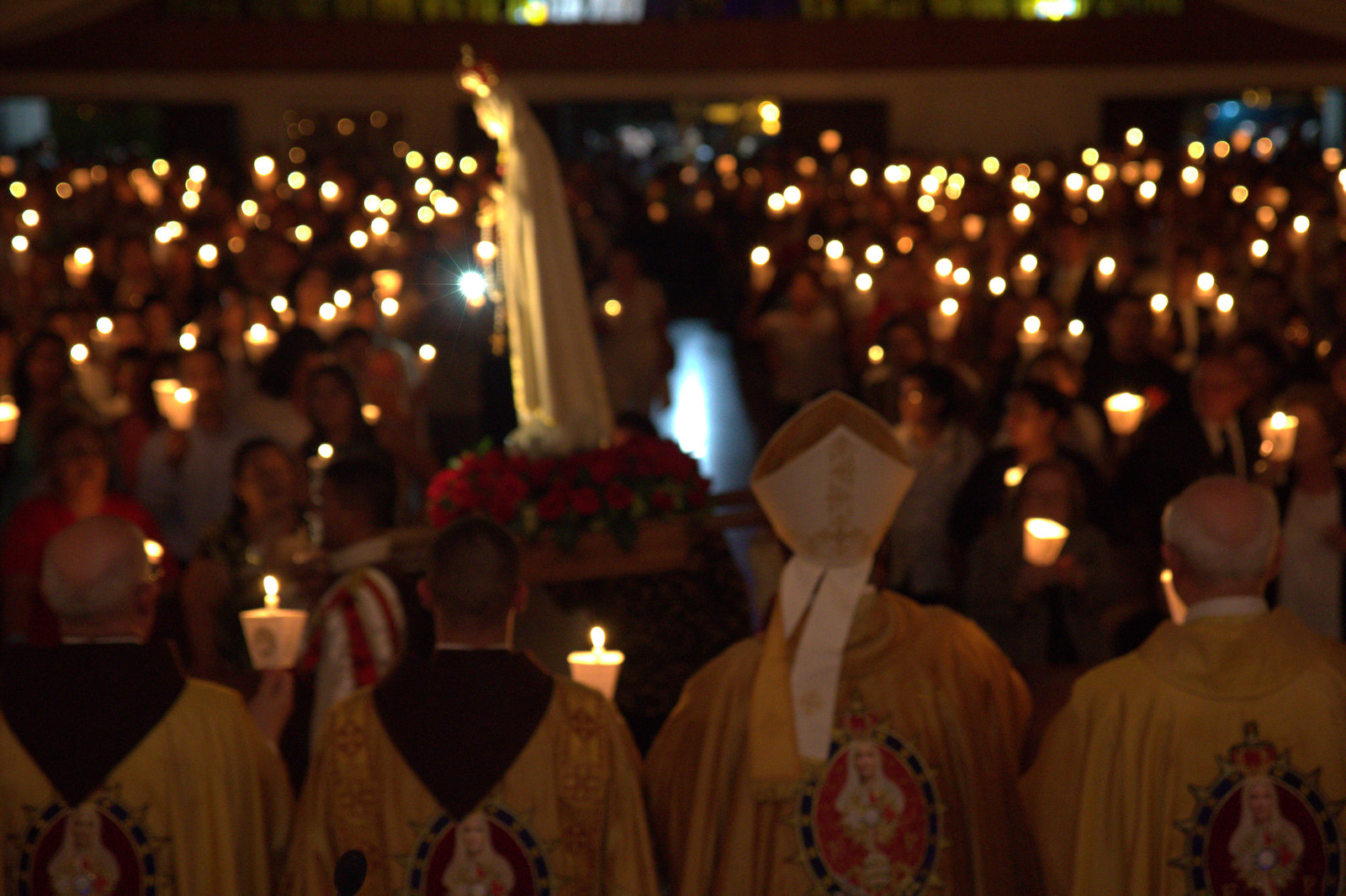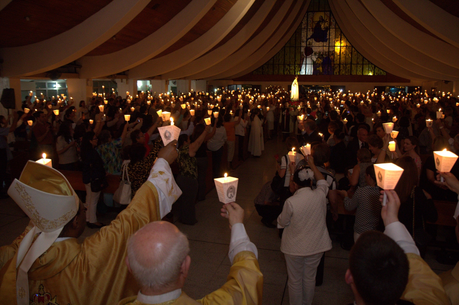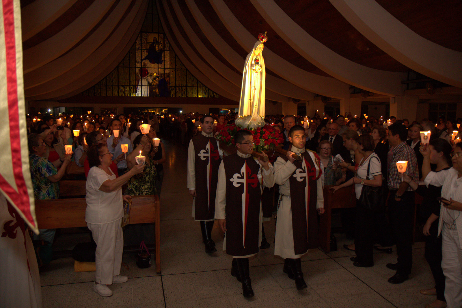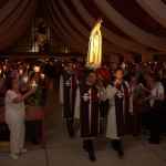Momentos de mucha emoción, sin duda, de tan bella ceremonia dedicada a la Virgen Santísima, fue cuando finalizada la Santa Misa, una procesión con la imagen, recorrió los pasillos de una abarrotada iglesia a la luz de cientos y cientos de velas que los fieles subían y bajaban al ritmo cadencioso de un multitudinario canto del “13 de mayo la Virgen María bajó de los cielos a Cova de Iría”.