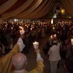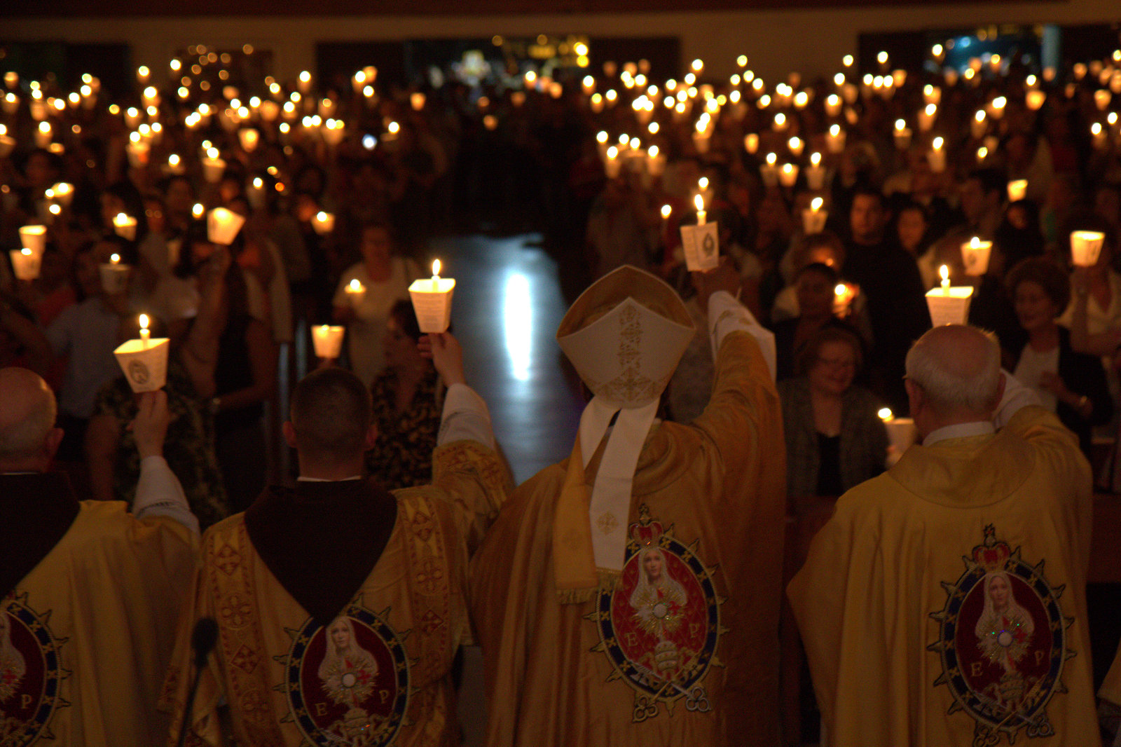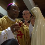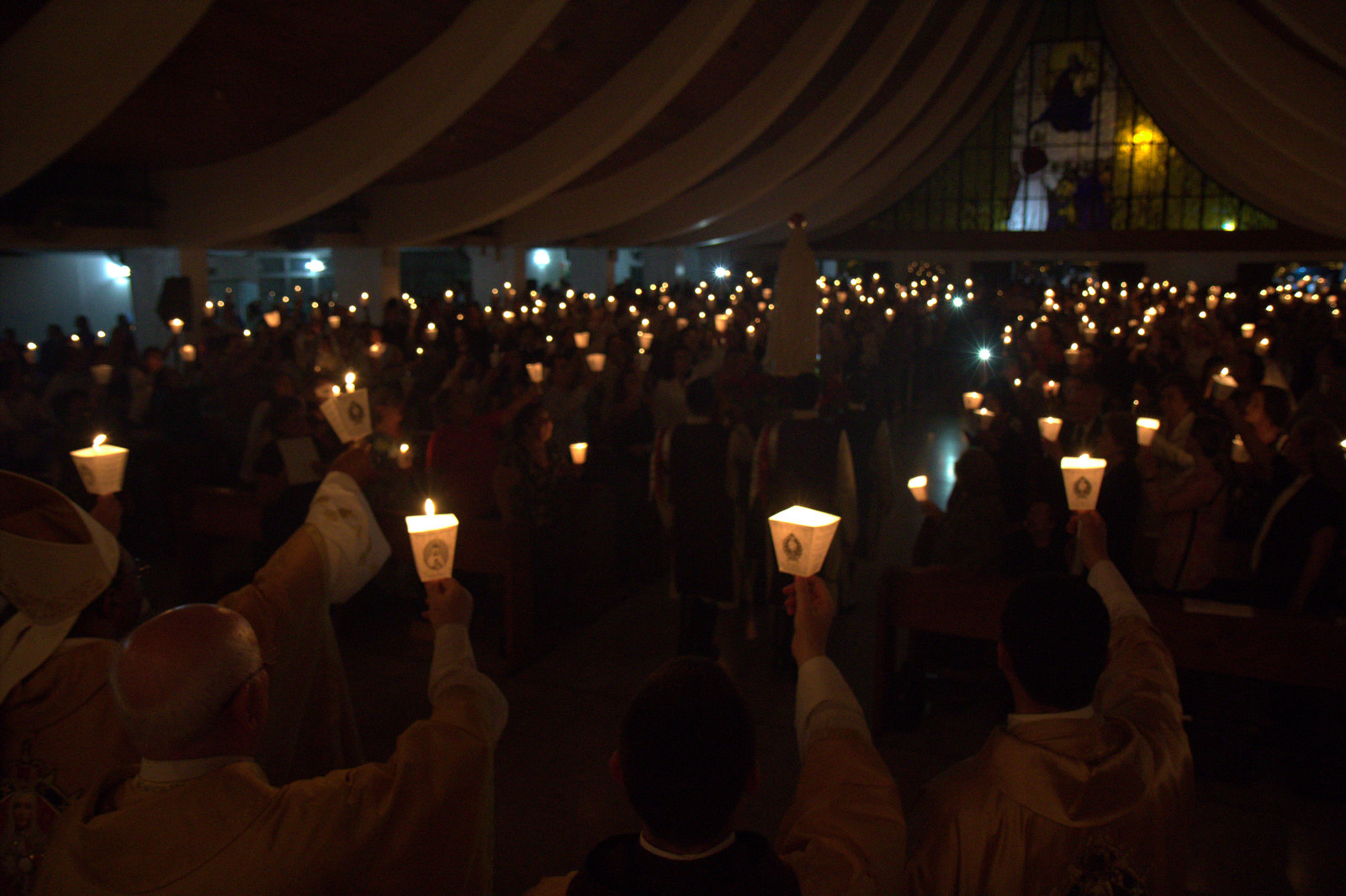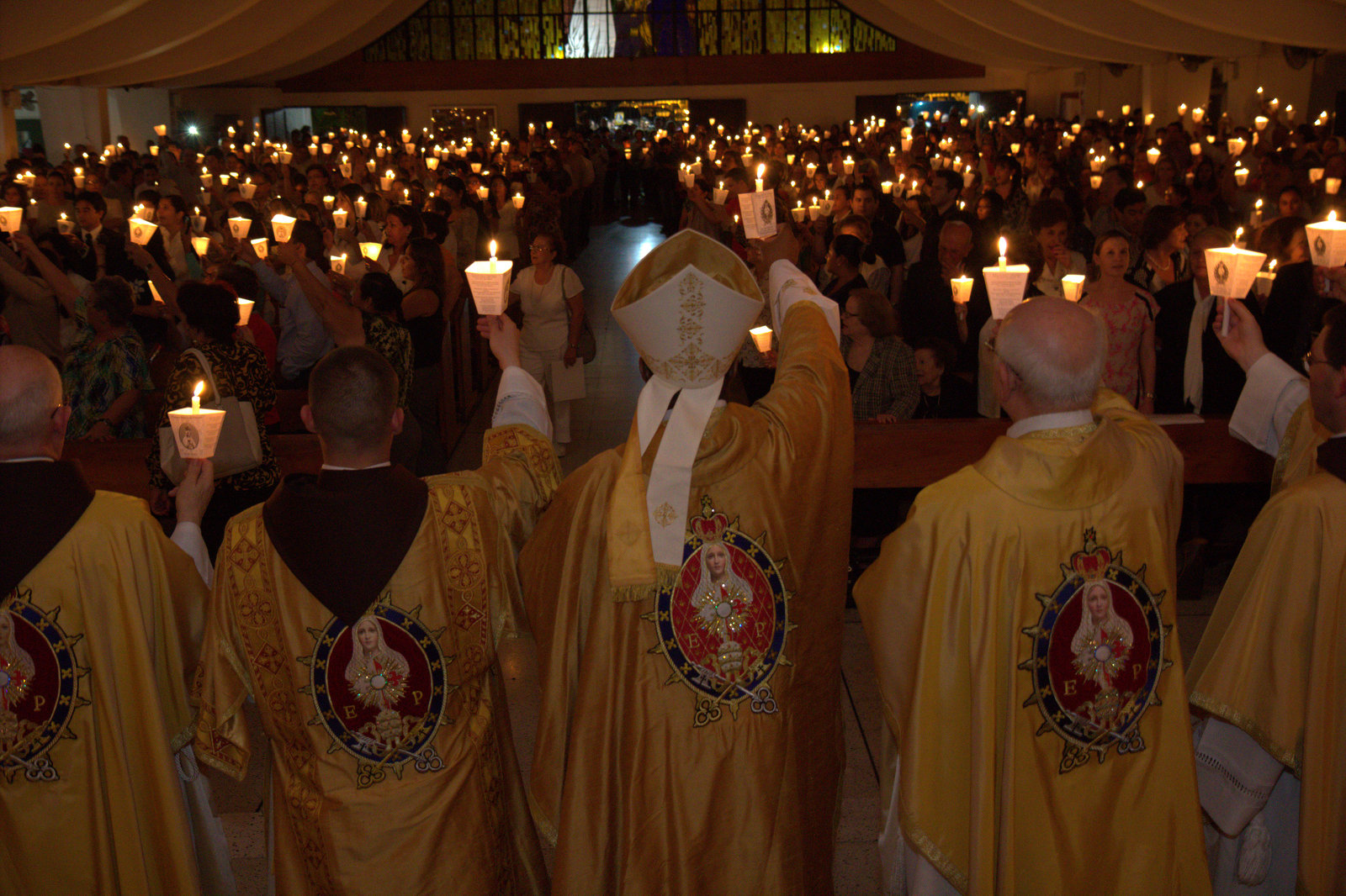 Momentos de mucha emoción, sin duda, de tan bella ceremonia dedicada a la Virgen Santísima, fue cuando finalizada la Santa Misa, una procesión con la imagen, recorrió los pasillos de una abarrotada iglesia a la luz de cientos y cientos de velas que los fieles subían y bajaban al ritmo cadencioso de un multitudinario canto del “13 de mayo la Virgen María bajó de los cielos a Cova de Iría”.
