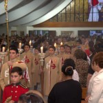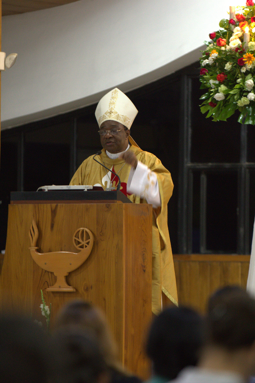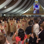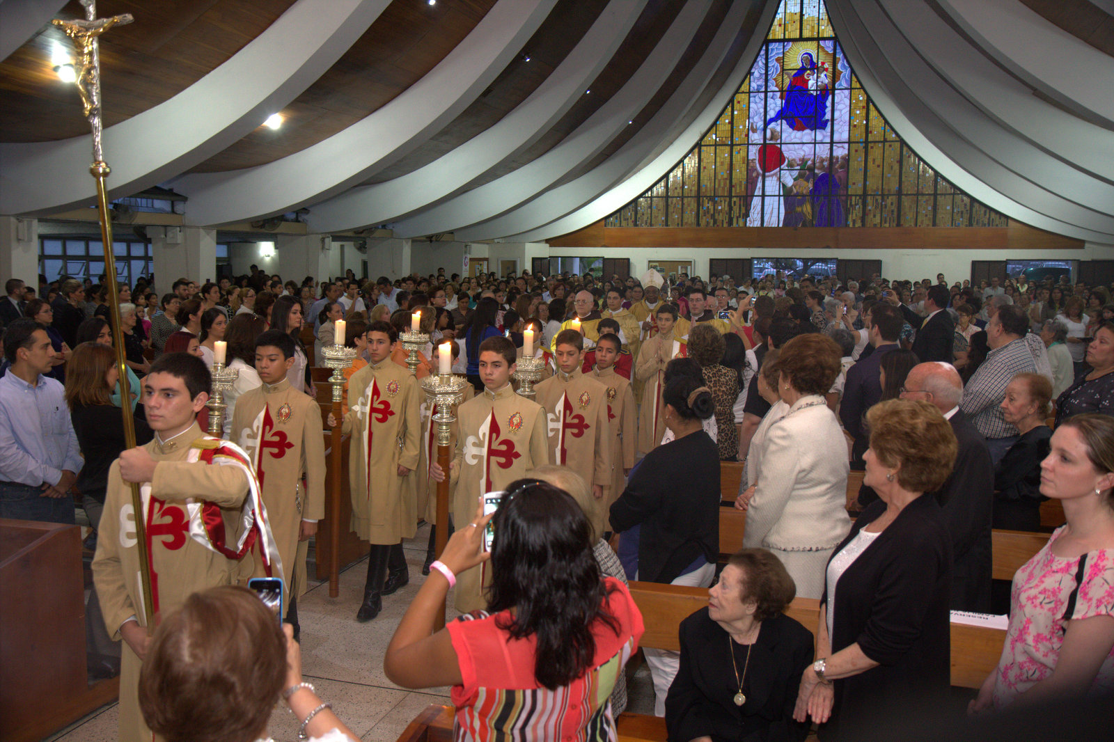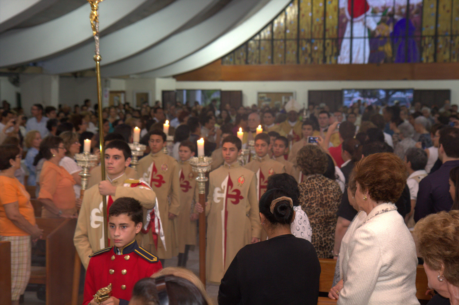 La Santa Misa fue celebrada por el Nuncio Apostólico en El Salvador, Mons. León Kalenga Badikebele y concelebrada por el párroco de Corazón de María, P. Sentre CM., el P. Fernando Gioia EP. y el Padre Michael Carlson, EP.