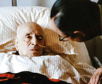 Al llegar a los capítulos finales, donde se trata de la última enfermedad y muerte del Dr. Plinio, se detuvo en la foto que presenta a Mons. João confortando a su maestro en el lecho del hospital. Benedicto XVI se fijó en la imagen largo tiempo, antes de pasar a observar otra, la del Dr. Plinio ya fallecido.