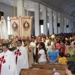 A las 8:00 a.m. se dio inicio con las palabras de bienvenida del Obispo Mons. Elías Samuel Bolaños y el rezo del Santo Rosario. Después del Santo Rosario hizo el ingreso la imagen peregrina del Inmaculado Corazón de María de Fátima al templo, donde fue coronada solemnemente por Mons. Elías Bolaños, con una lluvia de aplausos, y así dio inicio a la Santa Misa.