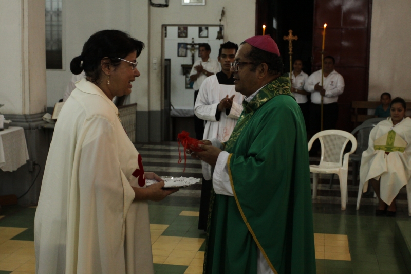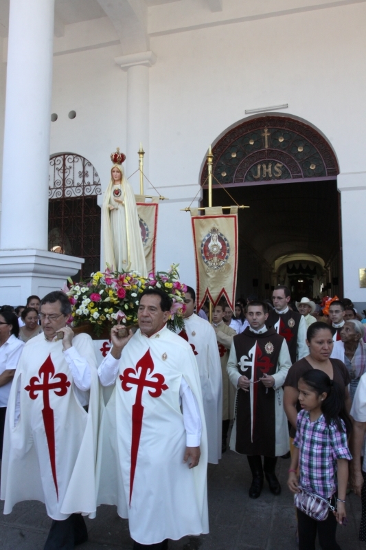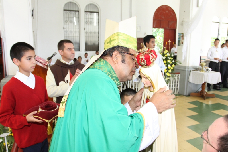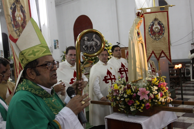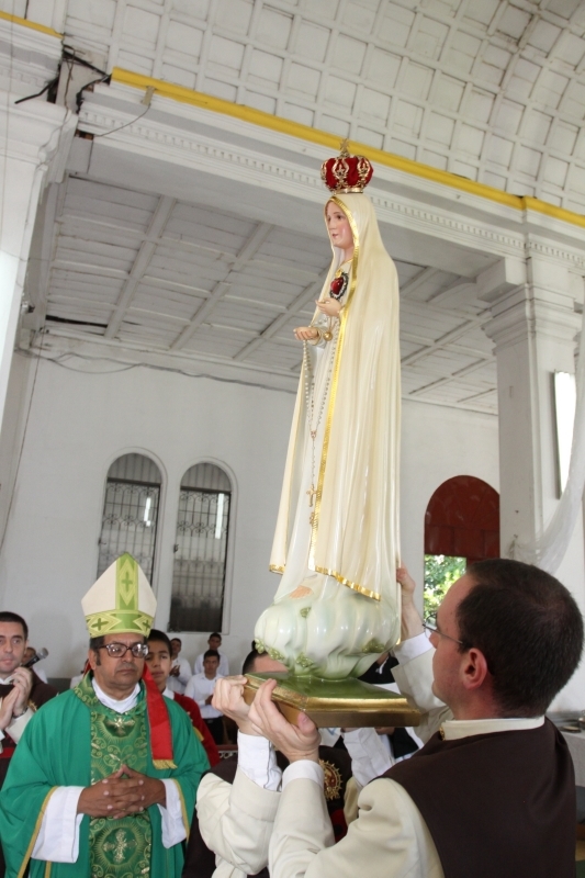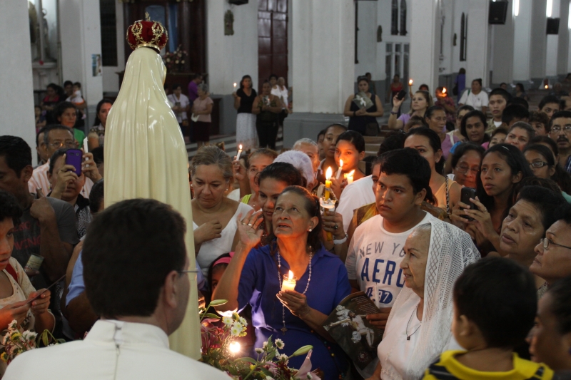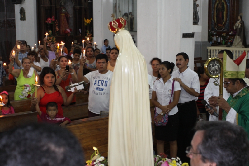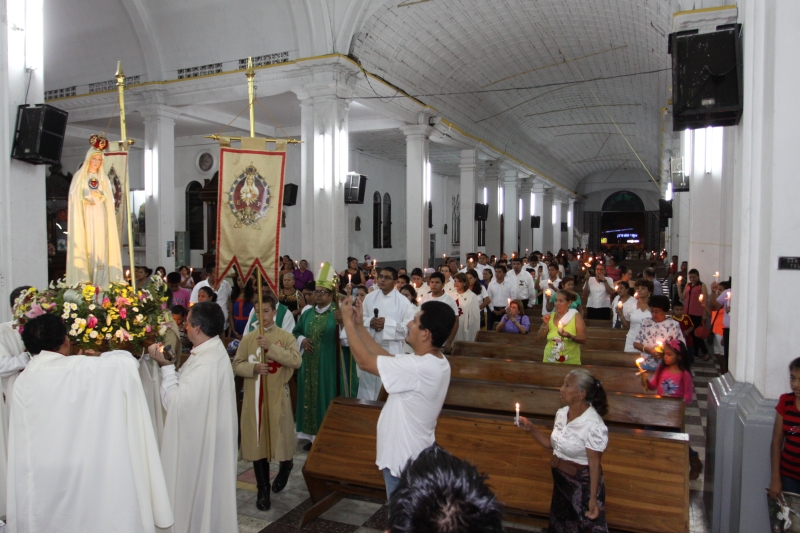 A las 8:00 a.m. se dio inicio con las palabras de bienvenida del Obispo Mons. Elías Samuel Bolaños y el rezo del Santo Rosario. Después del Santo Rosario hizo el ingreso la imagen peregrina del Inmaculado Corazón de María de Fátima al templo, donde fue coronada solemnemente por Mons. Elías Bolaños, con una lluvia de aplausos, y así dio inicio a la Santa Misa.