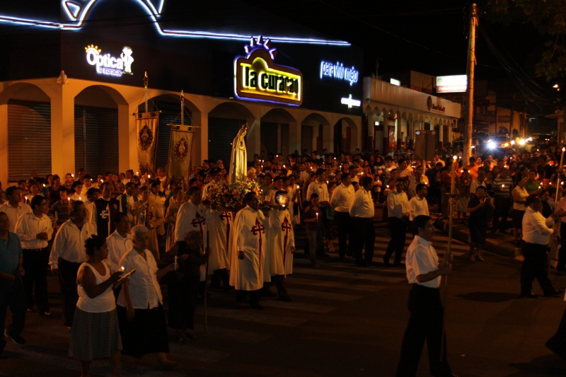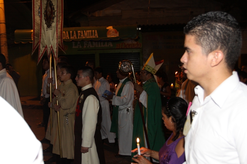 El Obispo agradecer la presencia de los Heraldos, y al finalizar la misa se hizo una procesión a luces de velas alrededor del parque frente a la Catedral.