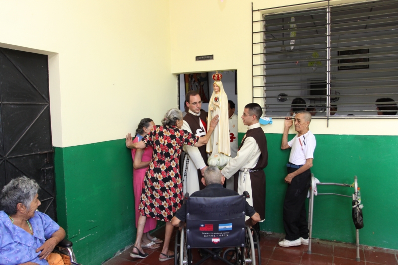 A las 11:45 partimos hacia el Asilo Nuestra Señora de los Pobres, donde los ancianitos estaban reunidos en el comedor, y esperaban con mucho fervor la augusta visita.