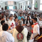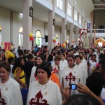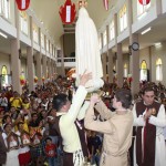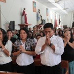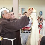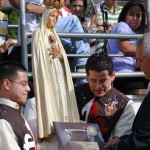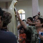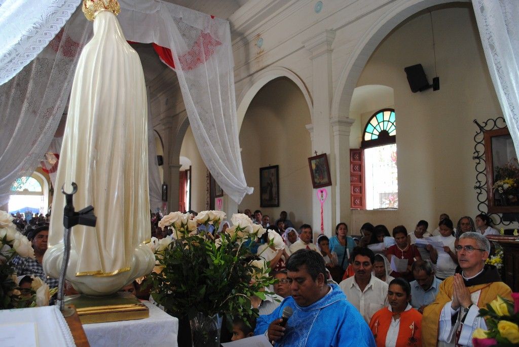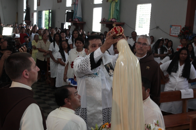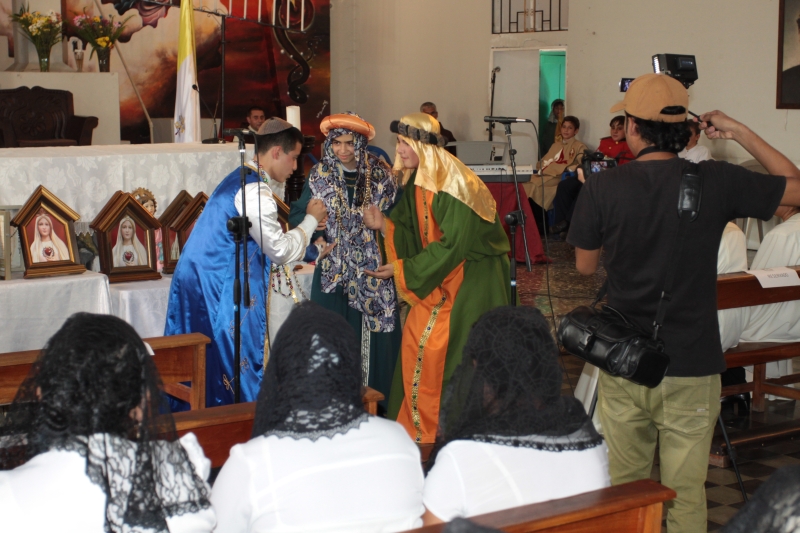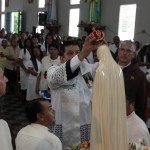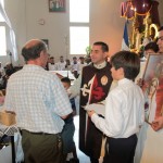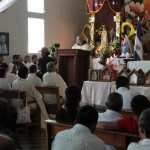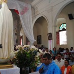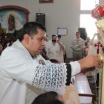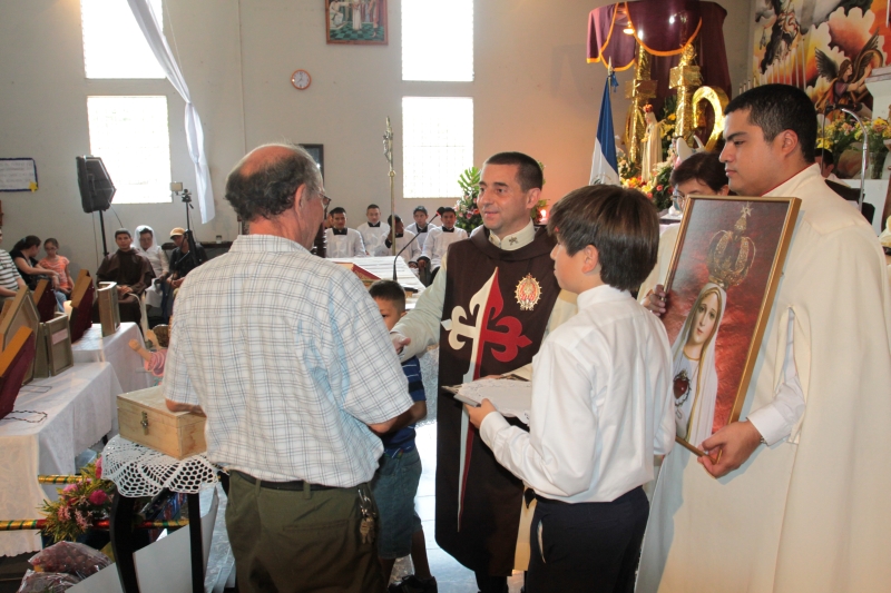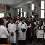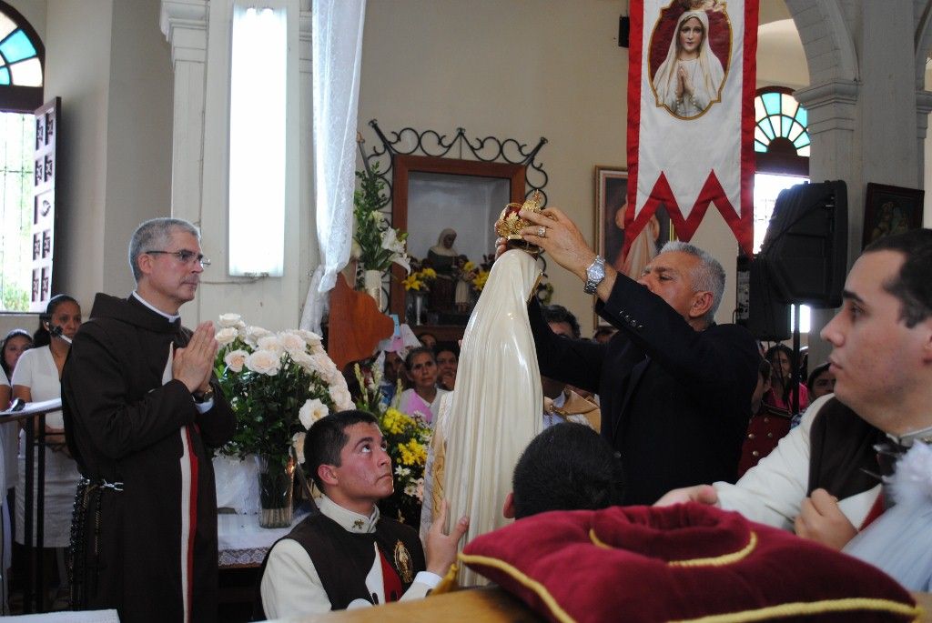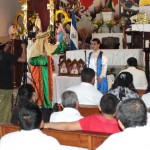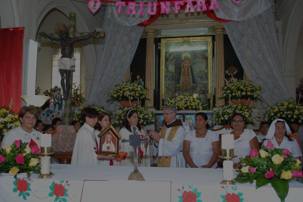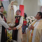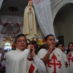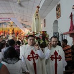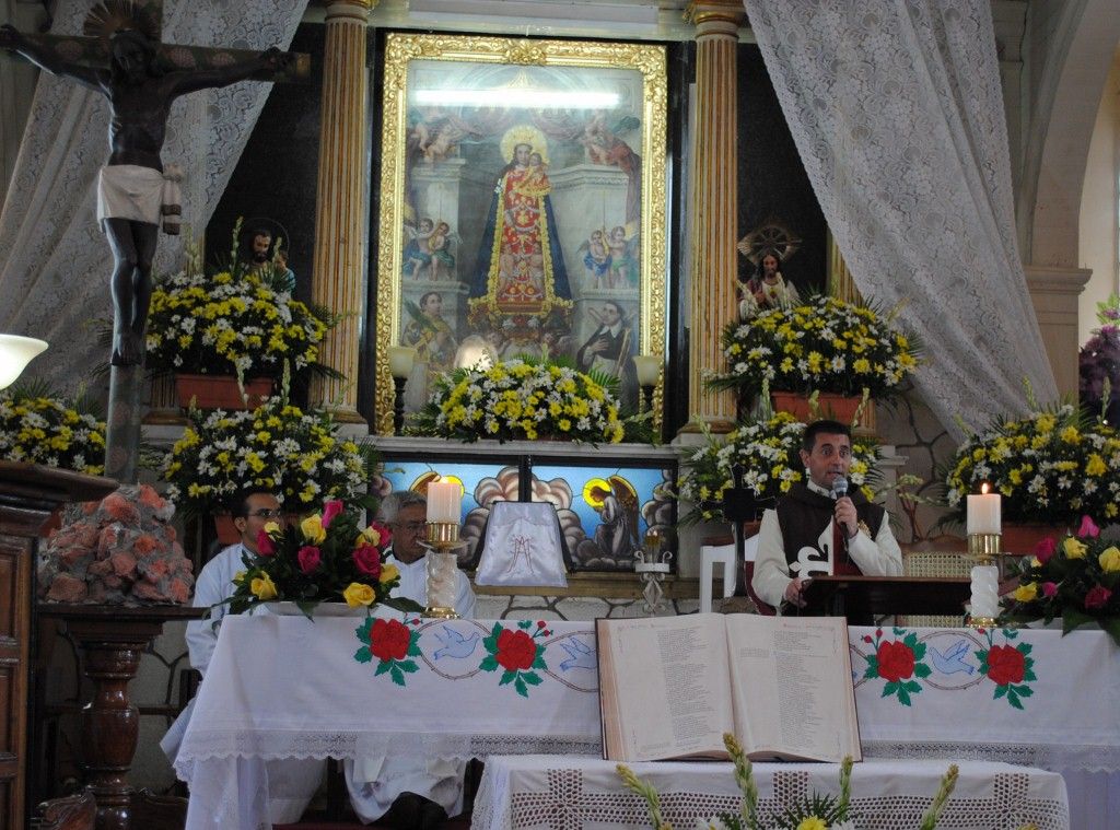 El P. Juan Fernando dio unas palabras de bienvenida a Nuestra Señora y quiso que la imagen se pasease por las naves de la iglesia para así los feligreses poder venerar mejor a tan augusta Madre, al término de la cual fue llevada a un hermoso altar preparado para la ocasión.