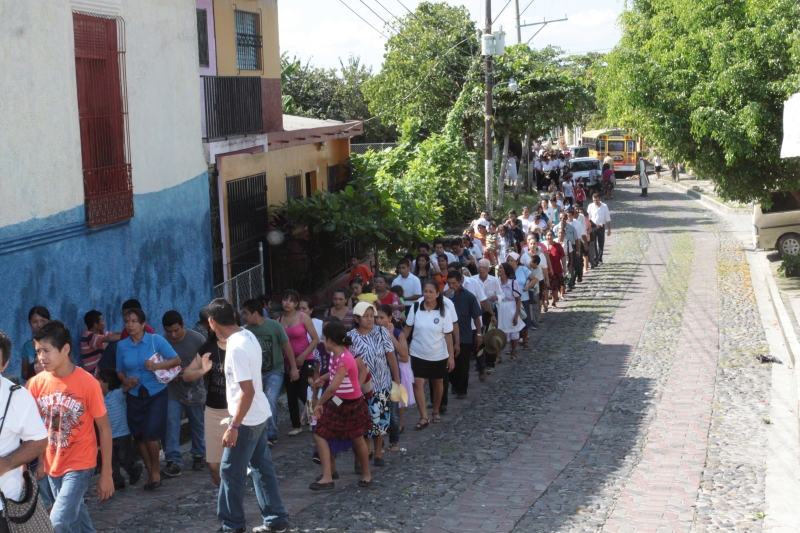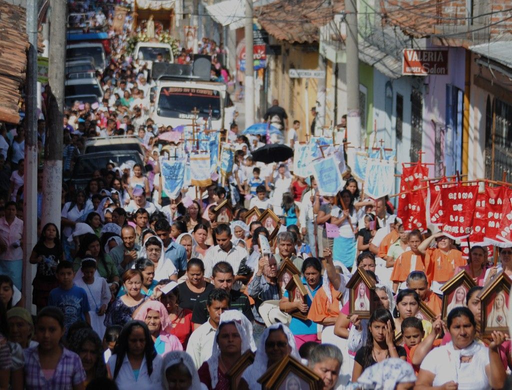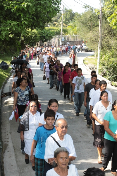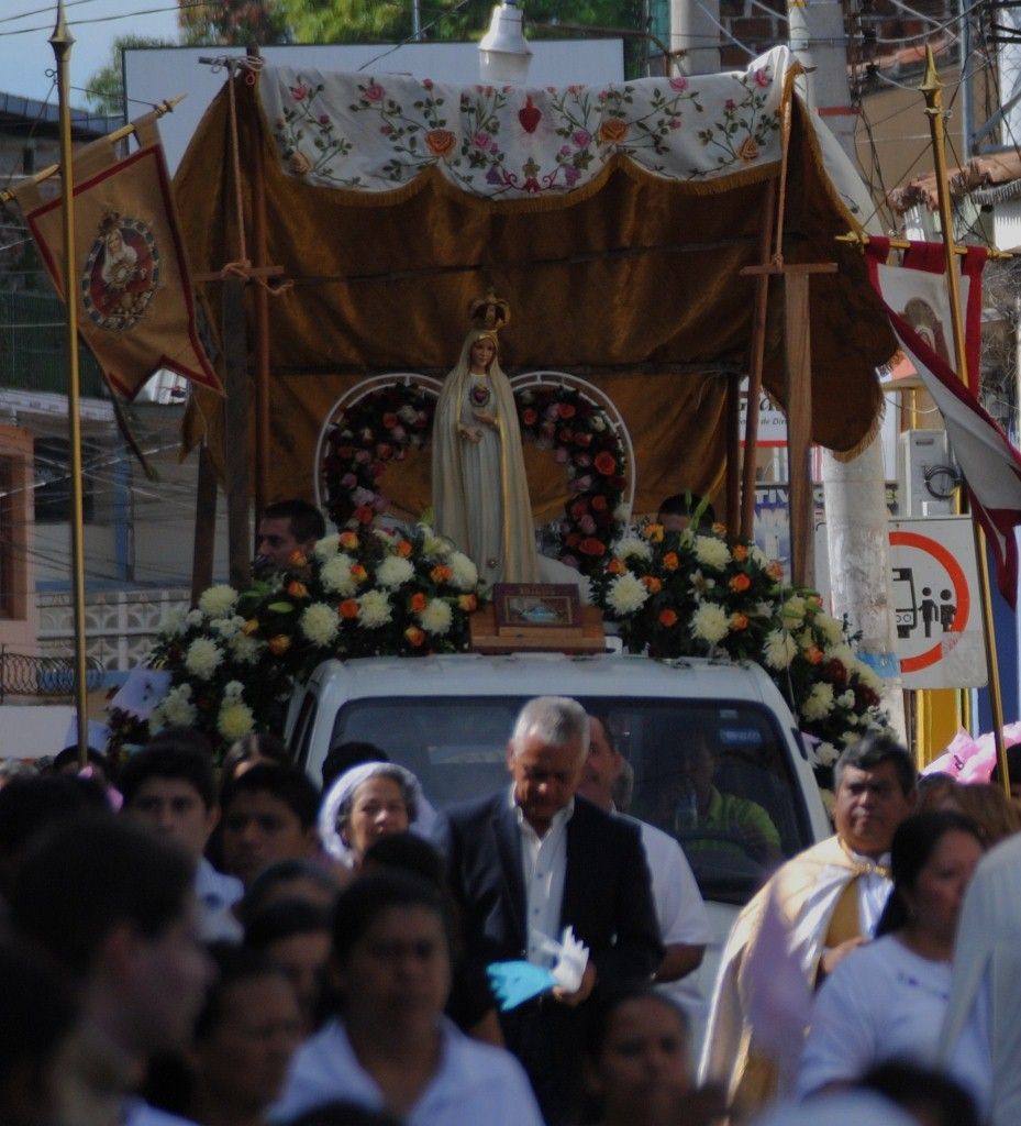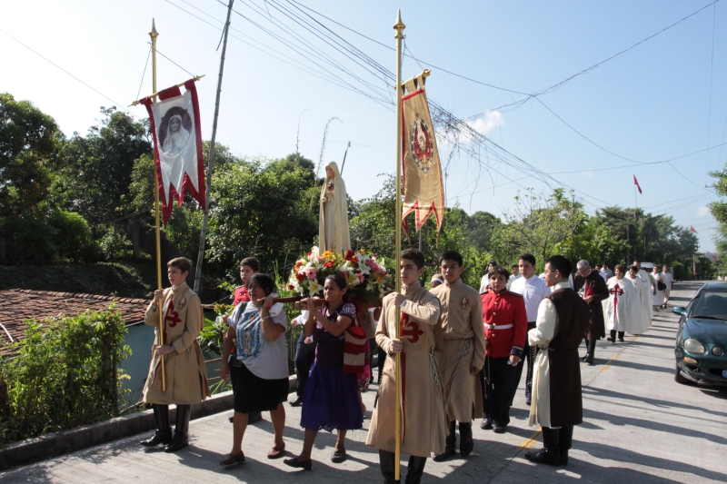 El domingo 3 de noviembre, los Heraldos del Evangelio en conjunto con la parroquia San Pedro de Masahuat, diócesis de Zacatecoluca, departamento de La Paz, se llevó a cabo una “Mañana con María”. El evento comenzó con una procesión, desde la entrada de la ciudad hasta la parroquia, con la imagen del Inmaculado Corazón de María, que era esperada por el Párroco, el P. Juan Fernando Echaverría y junto con él una multitud de fervorosos fieles. También tuvieron una participación toda especial el Apostolado del Oratorio de las diversas comunidades de la parroquia. La procesión fue acompañada por la banda constituida por los jóvenes de la parroquia, que animaban la peregrinación con sus toques entre misterio y misterio del Santo Rosario.