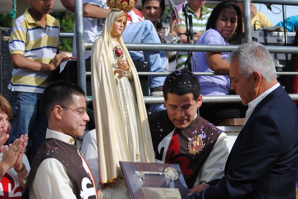 La “Mañana con María” fue coronada con broche de oro con la Solemne Misa de clausura celebrada por el P. Javier Pérez, EP., y con-celebrada por el P. Juan Fernando,dentro de la celebración, después de la homilía, los Coordinadores del Apostolado del Oratorio, pudieron recibir el pin y las capas distintivas de su apostolado y también el P. Juan Fernando le obsequió al P. Javier una hermosa casulla. Al finalizar la misa la feligresía pudo acercarse a la imagen peregrina del Inmaculado Corazón de María, para besar sus pies y pedirle gracias espirituales y materiales.